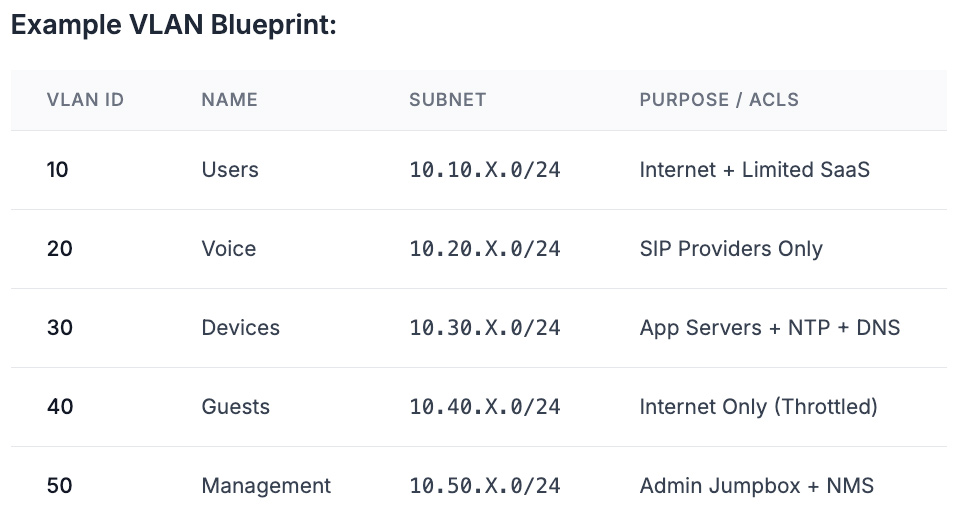 3. Publish a v1.0 VLAN blueprint and SSID schema.
